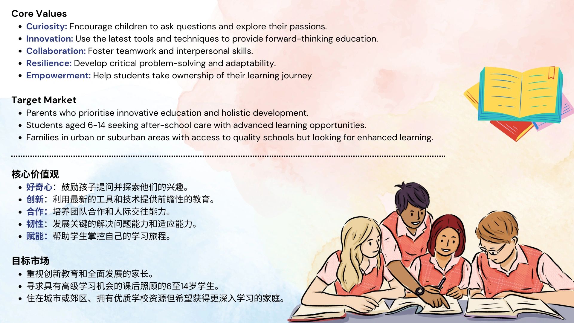 营销策略通过讲述品牌故事,突出受埃隆·马斯克启发的理念和学生成就,建立强大的品牌形象。通过举办开放日、展示日和工作坊等活动,以及鼓励学生参加比赛,增强社区参与度。数字营销利用有针对性的社交媒体活动和教育内容(如博客和视频日志)。与当地学校合作进一步推广课后项目,扩大影响力。